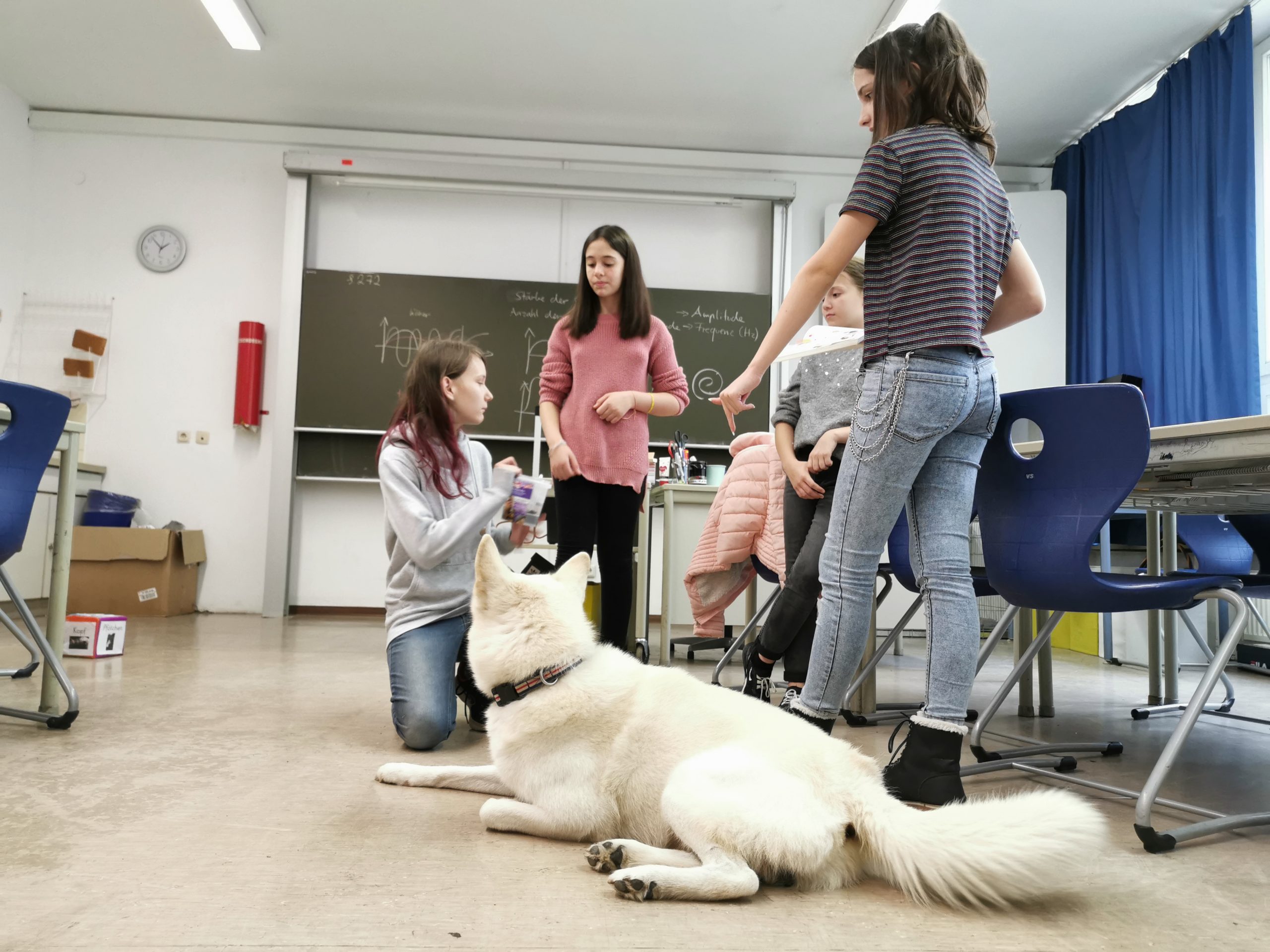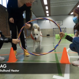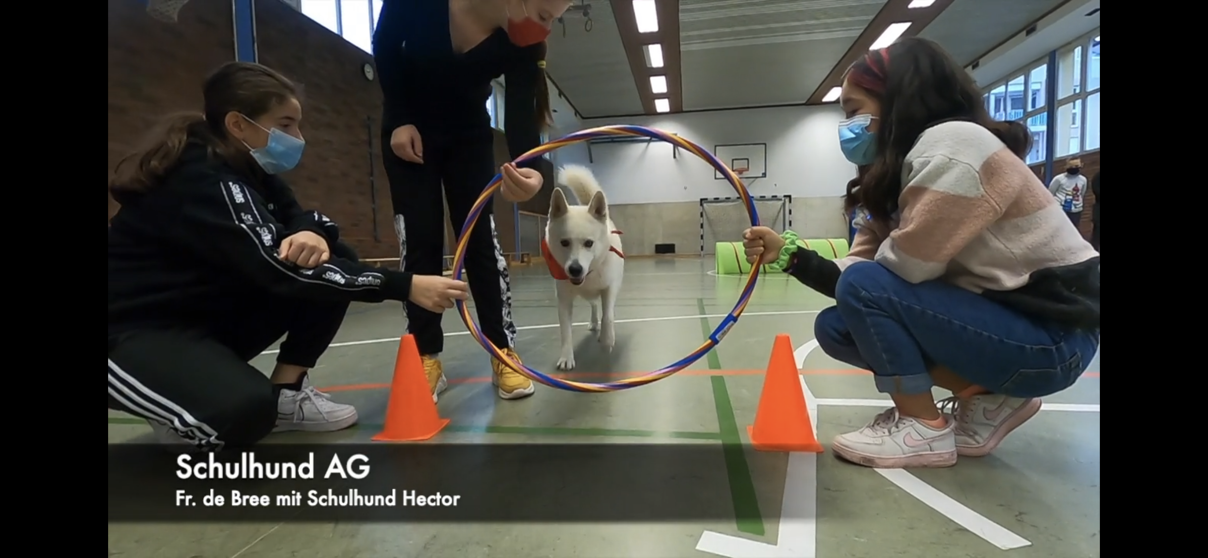 Eine absolute Besonderheit ist unser Schulhund „Hector“. Er hat seine Prüfung zum Schulhund erfolgreich bestanden und ist seitdem ein festes Mitglied des Kollegiums. Seine Anwesenheit fördert in den Klassen Ruhe, Verantwortungsbewusstsein und Empathie sowie Vorfreude auf den täglichen Schulbesuch.