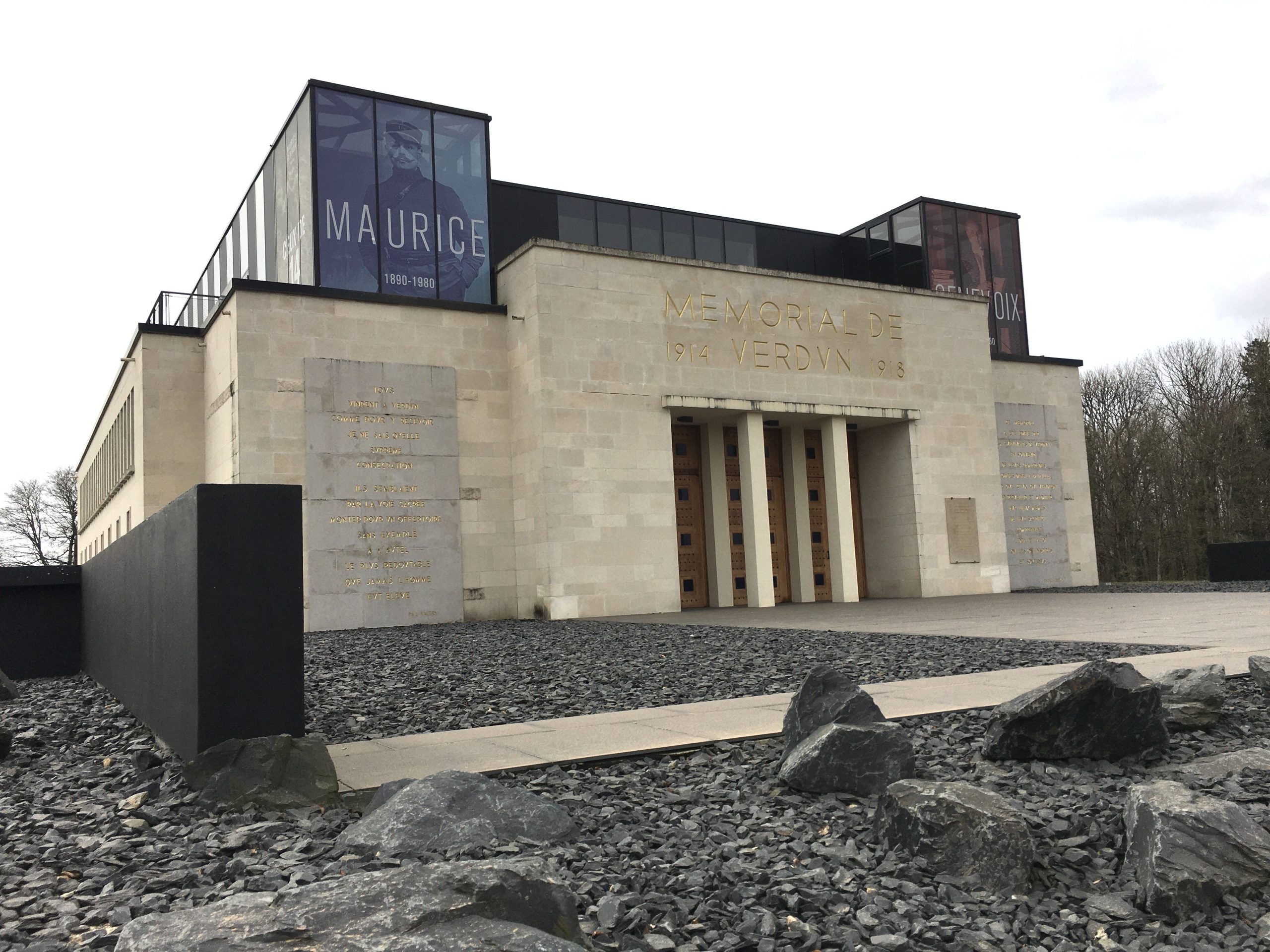 Unter der Leitung von Herrn Volker Venohr von der SDS führte uns die Fahrt zunächst auf den deutschen Soldatenfriedhof von Hautecourt, wo über 7800 deutsche Gefallene begraben liegen. Anschließend besuchten wir das zentrale Museum „Memorial de Verdun“ in Fleury, das 2016 neu gestaltet und konzipiert wurde. Zum neuen Konzept gehört es, die Sichtweise des Krieges sowohl aus  französischer als auch aus deutscher Perspektive darzustellen. In den Schützengräben der „Hölle von Verdun“ erlebten die Soldaten beider Kriegsgegner dieselbe Realität: Kälte, Hitze im Sommer, Schlamm, Hunger, Durst, Granateinschläge im Sekundentakt, katastrophale hygienische Verhältnisse. Neben vielen Original – Ausstellungstücken gab es multimedial aufbereitete Film- und Tondokumente zu entdecken und in die Schrecken der damaligen Schlacht einzutauchen. Eine kurze Wanderung durch das  – wie 8 weitere –  verschwundene ehemalige Dorf Fleury war ein emotionaler Höhepunkt für unsere Schüler: Steinblöcke mit Aufschriften zeigten die früheren Standorte von Bauernhäusern, der Schmiede, der Schule oder des Rathauses. Weiße Pfosten markieren den Verlauf der früheren Dorfstraßen. Auch nach über 100 Jahren sind die Narben des Granatbeschusses und die Trichterwüste noch heute deutlich zu erkennen.